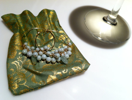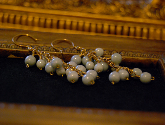 海のデザートという名前のピアス。ふんだんにあしらったブルーグリーンのビーズがゴージャスで涼しげ。