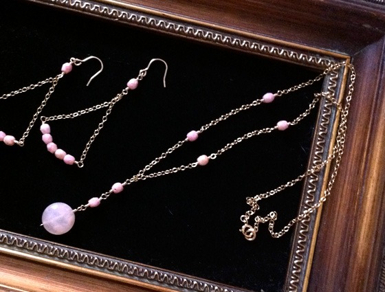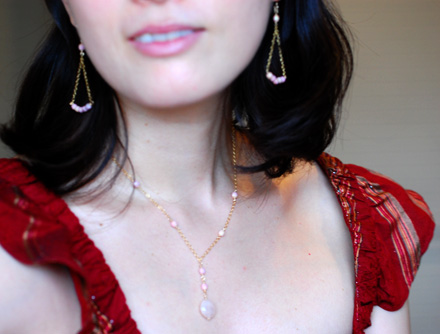 やわらかなピンクのビーズが醸し出す、クラシカルな雰囲気のピアス。