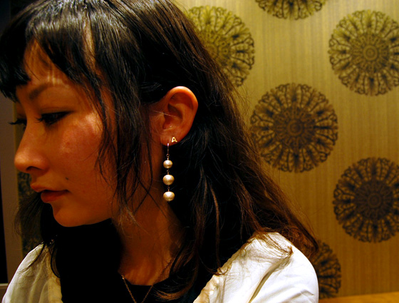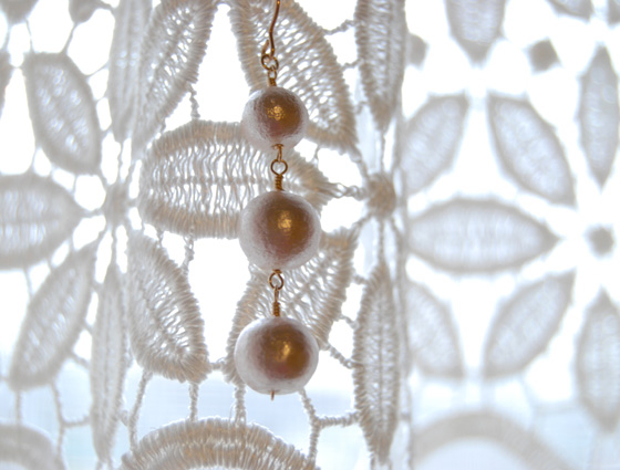 縦に並んだ大振りのコットンパールが優しく揺れます。