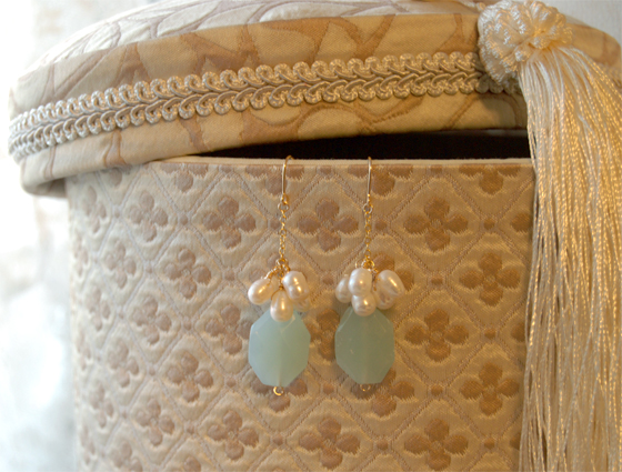 大粒のパールを組み合わせたゴージャスなピアス。甘い砂糖菓子のような、淡い色合いがドリーミー。