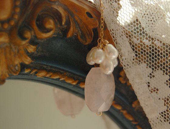 大粒のパールを組み合わせたゴージャスなピアス。甘い砂糖菓子のような、淡い色合いがドリーミー。