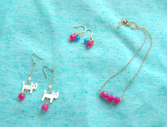 子猫が気ままにお散歩しているよう。ピンクの天然石がファッションのアクセントになってくれます。