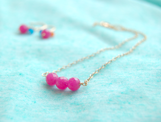 桜草のようなピンクが個性的。とても短めのデザインなので、重ねづけで遊んでも素敵です。